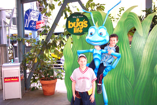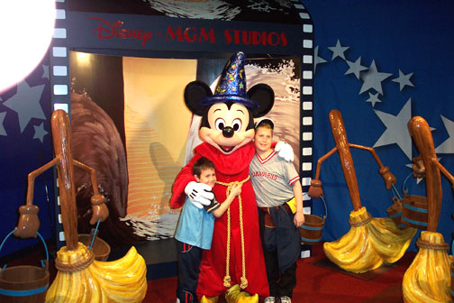 Brett and his Boys Visit Walt Disney World Brett Oakley came to town in January 2004 and we spent a day at Disney World's MGM studios one Sunday afternoon. He had his sons Justin and Kevin with him. Brett brought along his girlfriend Gabby who was quite vague about her age. We guessed around 20. -Gabby, Justin and Winnie the Pooh