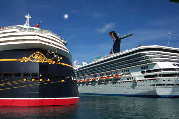 -The Valor and Disney Wonder docked side by side