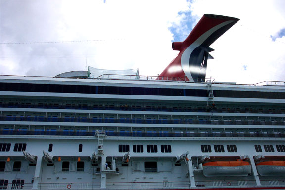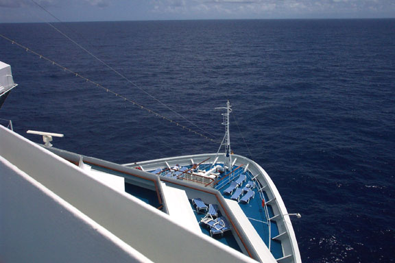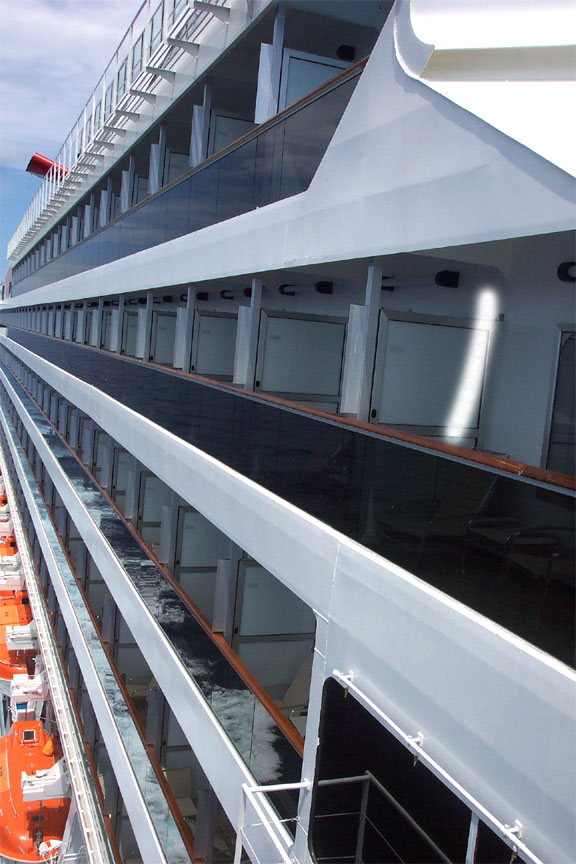 Side view of the ship looking towards our cabin