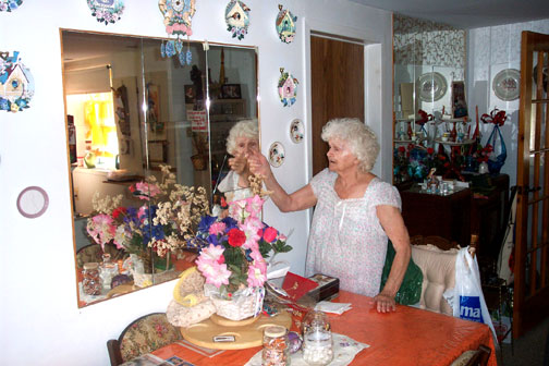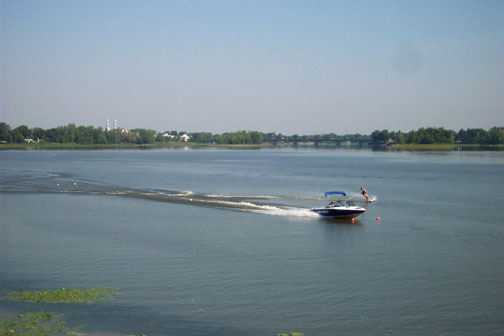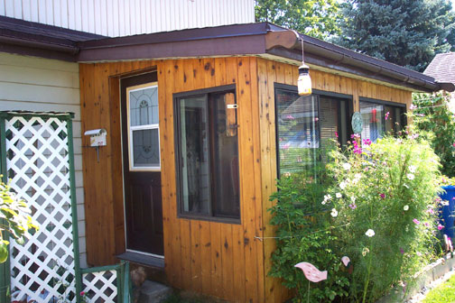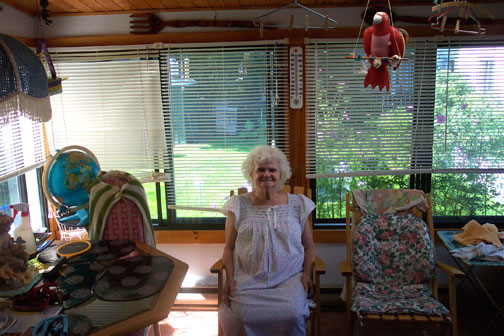 Trip to Montreal - August 27th - Last Day -The backyard sun deck -Walking along the boardwalk I saw this house that I liked -Albert said they almost bought this place -A Pro Water skier was on the river -Nanny on her rear porch -In the Dining Room -Albert in his workshop - Two hours later I was at the airport |