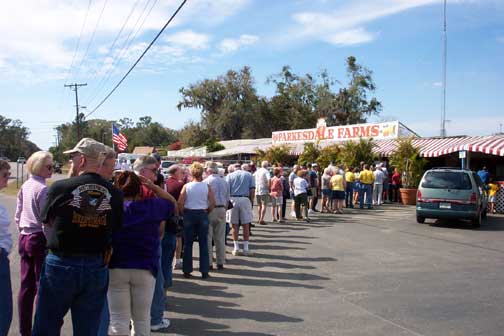 Florida Good friends, David and Lesley Boyd from England decided to treat Lorraine and I to an afternoon of adventure. For years we have heard about the Plant City Strawberry Festival but we never knew where it was. Less then an hour West of Kissimmee is this wonderful village where billions of strawberries are in season every spring. -This road side farmers stand is the heart of the strawberry sundaes -Our second surprise was a trip to Hollis Gardens in Lakeland -All through the park are statutes of people in everyday life