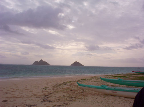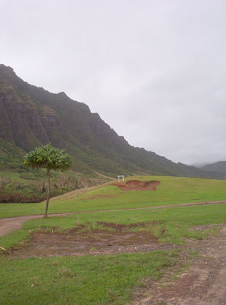 Those mountains in the back are remnants of ancient volcanoes on Oahu