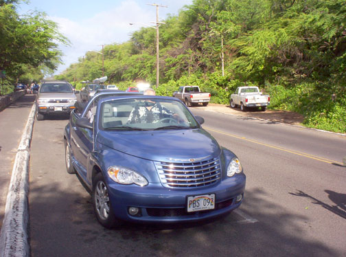 we rented a PT Cruiser Convertible and drove all around Oahu, about 200 miles. |