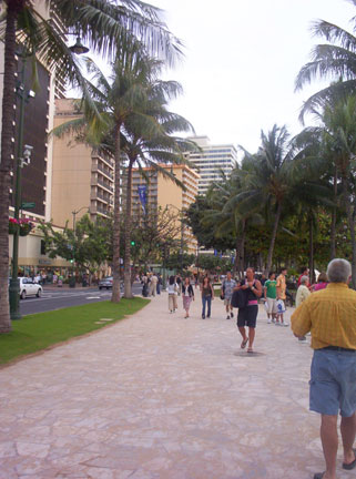 Walking down Waikiki during the day. My