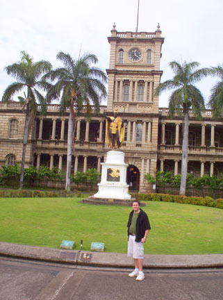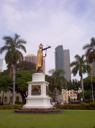 Hawaii's Supreme Court with the golden statue of King Kamehameha the