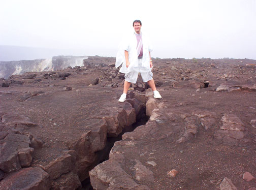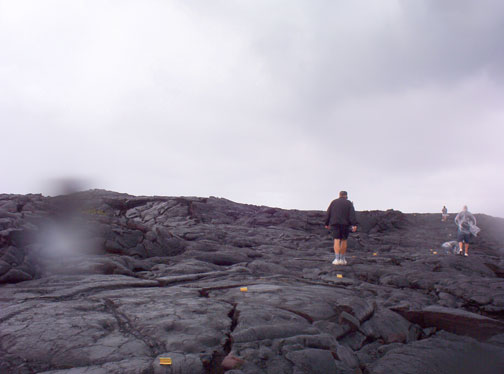 My father walking on the lava. In