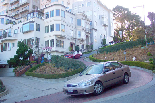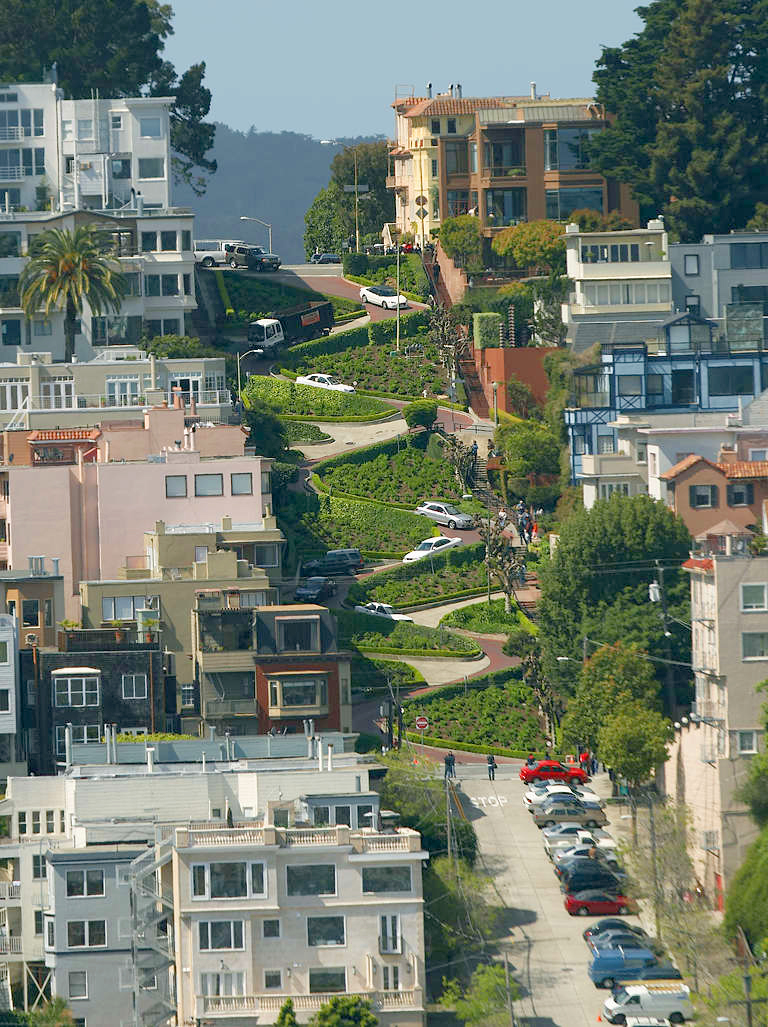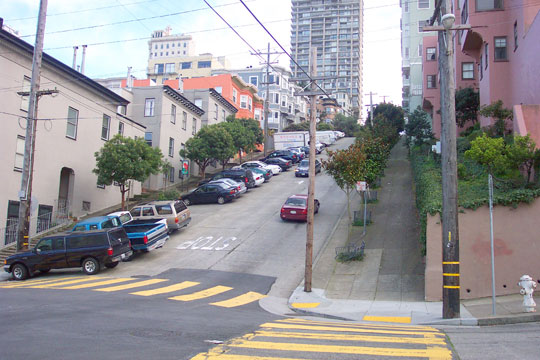 Hill district. Its crooked design was to reduce the street's natural 27°