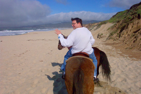 pictures while riding horseback along the beach in Half Moon By, CA.