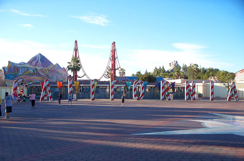 Paradise Pier section... home of Toy Story Midway Mania Ride. One of the few rides without FastPass. A Cast Member told me it was because not every ride can have FastPass. It's a copy of the Florida version and just like in Florida the line gets out of control fast!