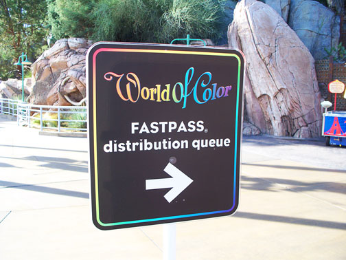First stop... rush to the FastPass distribution queue. Without a FastPass for the show there is no guarantee that you'll get a spot in the designated viewing area. The viewing area holds several thousand people and is divided into different tiers. If you get a FastPass first thing in the morning you'll be in the front of the viewing area. If you wait then you might end up at the back or have a less desirable side-view of the show.